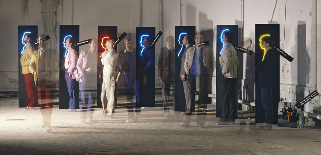 Concepts – Monica de Carvalho, Hartmut Kowalke, Xandra van der Zwan, Reyn Jongenelen, Ans Zoutenbier, Anne Stienstra, Ton Haak, Hedwig, Hans Verlaat, Hans Bockting, Els Staal, Eric Vos, Denise Ghering, Karl Sewalt, Will de l’Ecluse en Marcel Vroom. Foto: Reinier Gerritsen (1983)