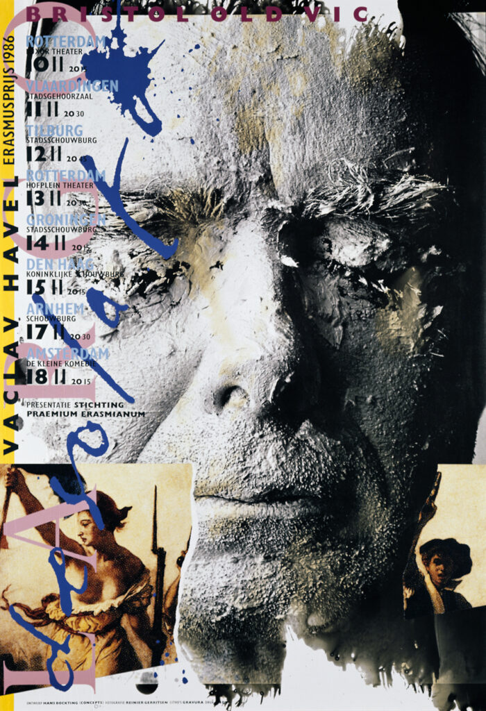 Hans Bockting: “In 1986 ontving Vaclav Havel de Erasmusprijs. Naar aanleiding hiervan voerde The Bristol Old Vic in een aantal steden Havels stuk Largo Desolato op. Het gepleisterde hoofd is dat van Hartmut Kowalke, een van mijn partners bij Concepts. De opname en de afdruk van zijn portret werden gemaakt door Reinier Gerritsen.”