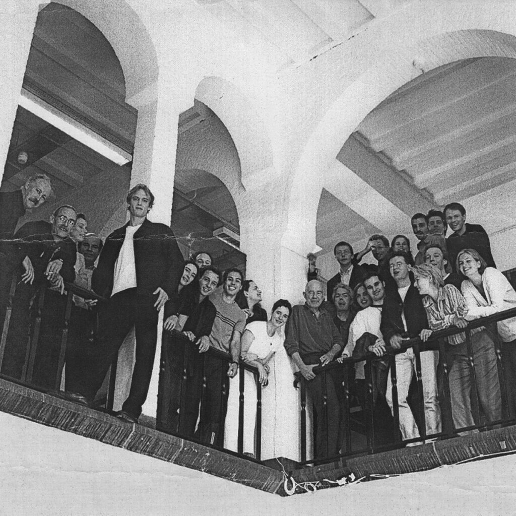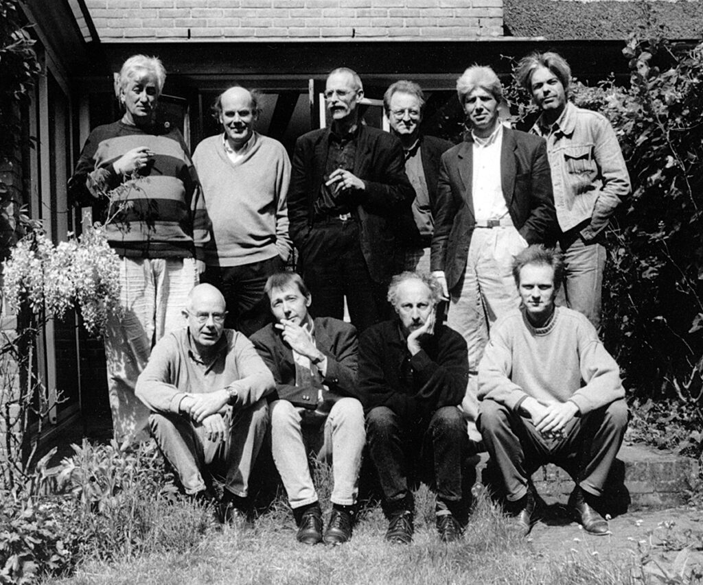 Docenten St. Joost, 1994. Staand: Geert Setola, Hugues Boekraad, Henk Cornelissen, René Pijnenburg, Paul van ‘t Hullenaar, Bas Wilders. Zittend: Hartmut Kowalke, Rens Holslag, Dominique Ampe, Jaap van Triest