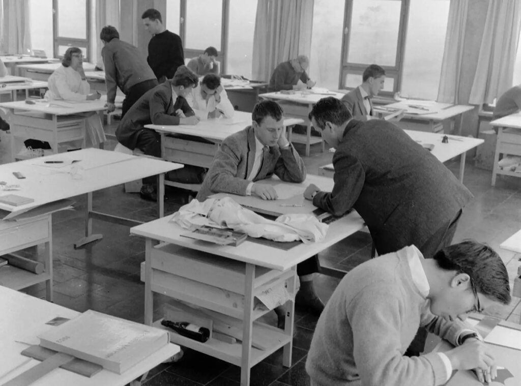 De school was in 1955 opgericht als een cruciale schakel in de opbouw van een democratisch Duitsland. Het land moest breken met het naziverleden, maar ook met de dominante Amerikaanse importcultuur van de naoorlogse periode. Aan de vormgeving van gebruiksvoorwerpen en informatie werd al tijdens het eerste studiejaar – in de zogenaamde Grundkurs – een diepe theoretische onderbouwing gegeven. ‘Dat eerste jaar was uiterst breed: sociologie, gedragspsychologie, semiotiek, systeemtheorie, ergonomie, mathematiek; al dat soort vakken werd onderwezen. ‘Empirie bijvoorbeeld,’ zegt Kowalke, ‘is voor ons vak onontbeerlijk.’ Telkens werd een week theorie afgewisseld met een week praktijkonderwijs, en dat in volledige werkdagen. Het eerste jaar woonde je gedwongen in de stad, in het tweede jaar deelde je met een andere student een kamer in de Hochschule, het derde jaar had je daar een eigen kamer en in het laatste jaar kreeg je een atelier.’